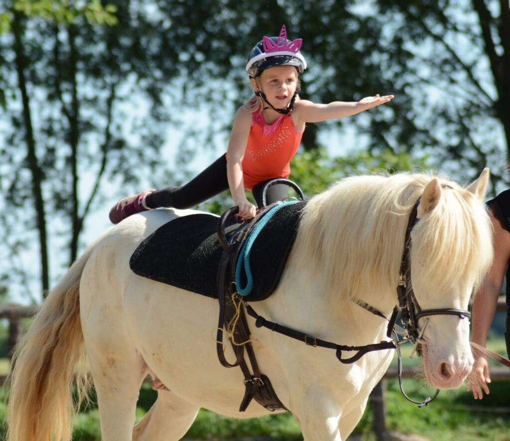 Activité accessible à tous, la voltige développe la souplesse, l’équilibre, la coordination et la confiance en soi, tout en renforçant la relation avec le cheval.